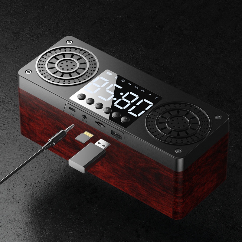 Stereo Subwoofer Bluetooth Speaker FM Radio Portable Speakers Mp3 Play Super Bass Loudspeaker Computer Column Brown
