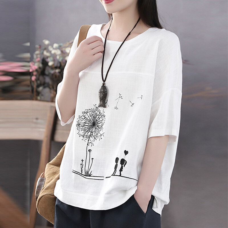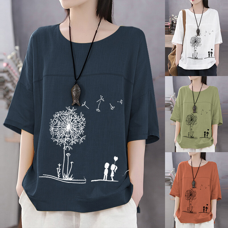 Rulfepy ZANZEA Women Oversize Short Sleeve Summer Tops Ladies Cartoon Cotton Shirts Blouses Tee