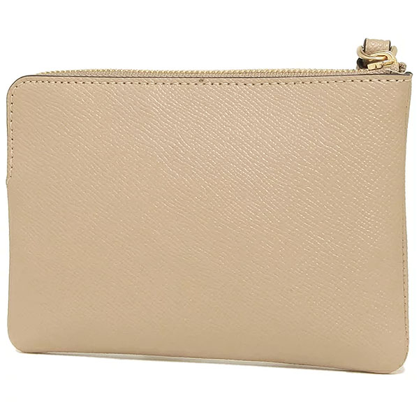 Coach Wristlet In Gift Box Small Wristlet Crossgrain Leather Corner Zip Taupe Beige # 58032