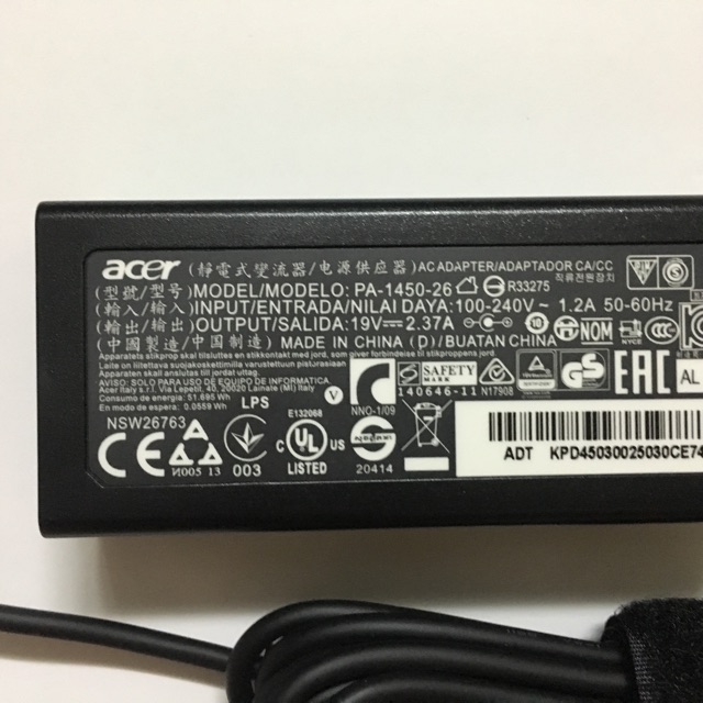 19V 2.37A 45W Laptop Ac Power Adapter Charger for Acer Aspire Swift 3 s7 391 V3-371 A13-045N2A PA-1450-26 ES1-512-P84G