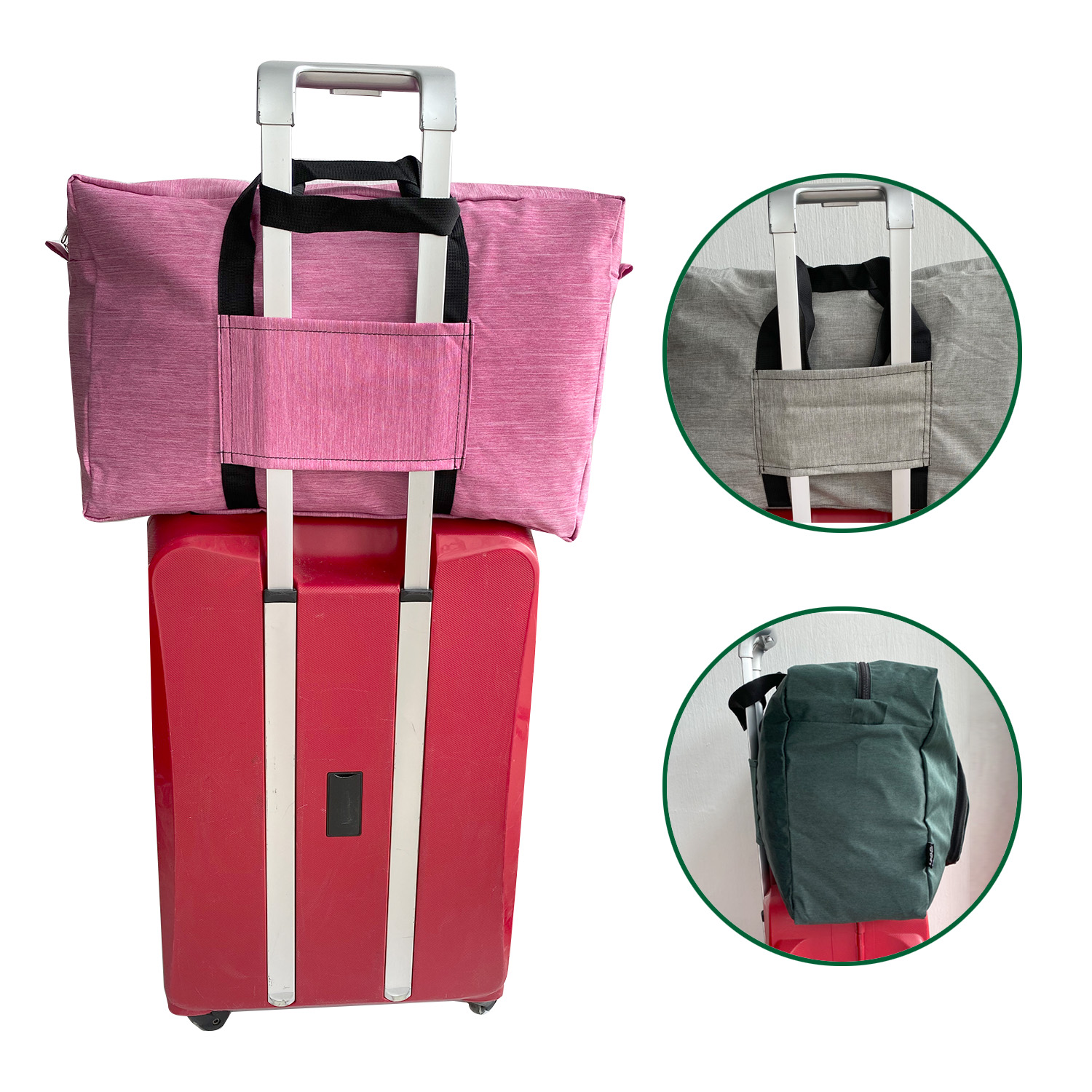 Fold up when you not use, does not take much space in your luggage, unfolded as extra bag for souvenir or clothes when travelling leaves room for valuables in your suitcase, or used as a carry-on with decent size to fit under an airline seat or in the overhead bin in case you are overweight for a checked bag. It can be use as a gym bag to put shoes and towels.