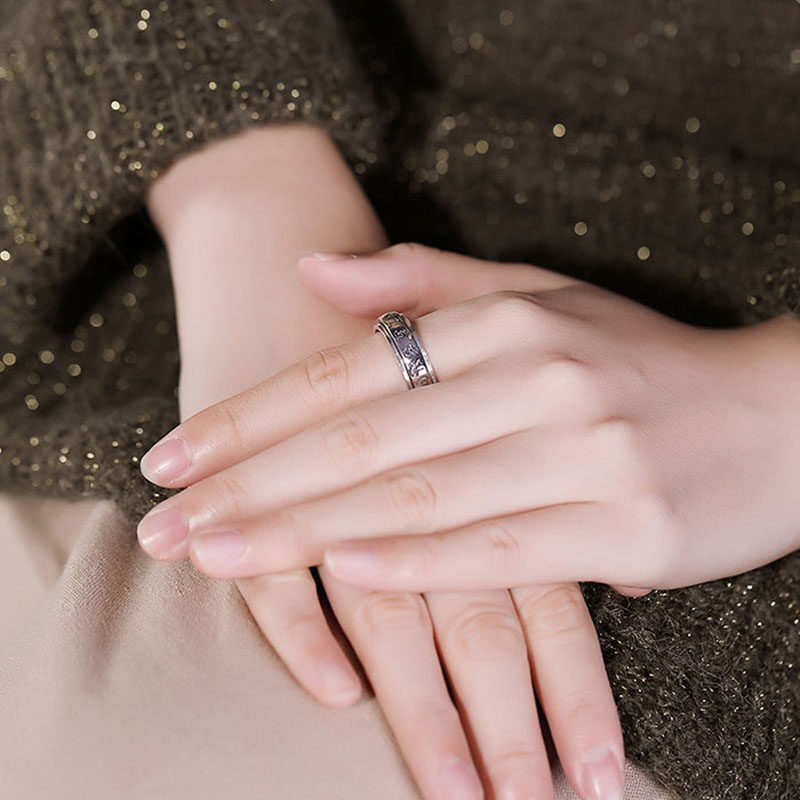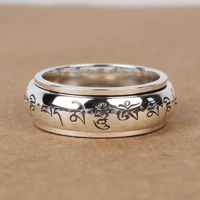 IY-Heart Sutra Ring Genuine Hartai Ring S925 Sterling Silver Rotatable Men'S And Women'S Rings Increase Fortune And Wealth
