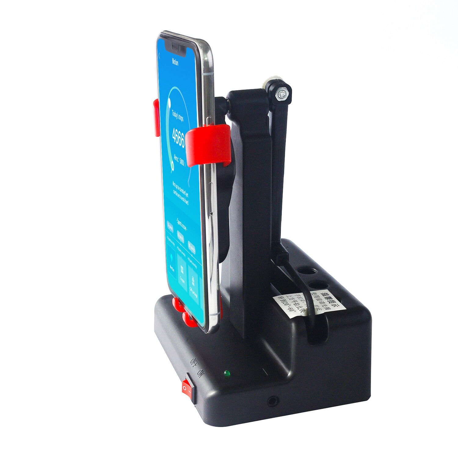 Features: 1. Left to right swing. More closely imitates walking. 2. No magnet. No more magnet interference on phone. 3. ON/OFF switch. Can be easily turned off and on. 4. More stable. Fixed with a three point arm. 5. 1 The number of steps per hour increased from 8,000 to 10,000. 6. With the metal wheel, you won't be annoyed by noise.