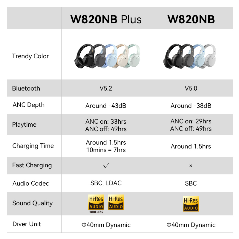 Edifier W820NB/W820NB PLUS Wireless Bluetooth Noise Cancelling Headphones Hi-Res Audio Bluetooth V5.0 40mm Type-C Fast Charge Hybrid ANC