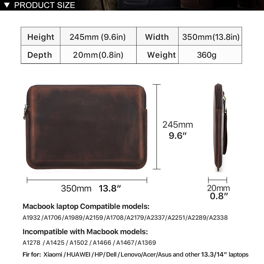 Genuine Leather Laptop Sleeve Case 13 14 15 16 Inch For Macbook Air/Pro Lenovo Asus Acer Dell HP Notebook Carrying Bag