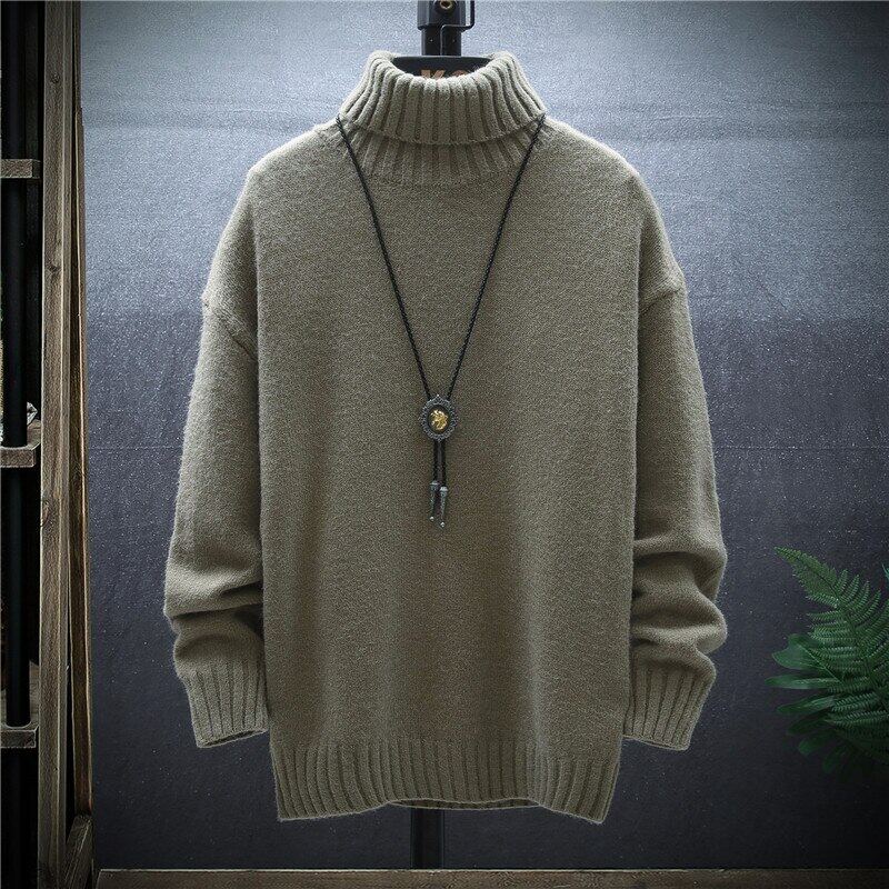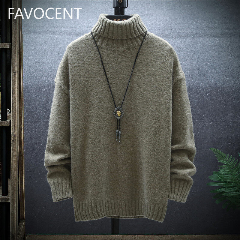 FAVOCENT 2021 Winter Thick Men Slim Sweater Solid Color Turtleneck Pullover Sweaters Mens Korean Casual Men Long Sleeve Knitwear Coats