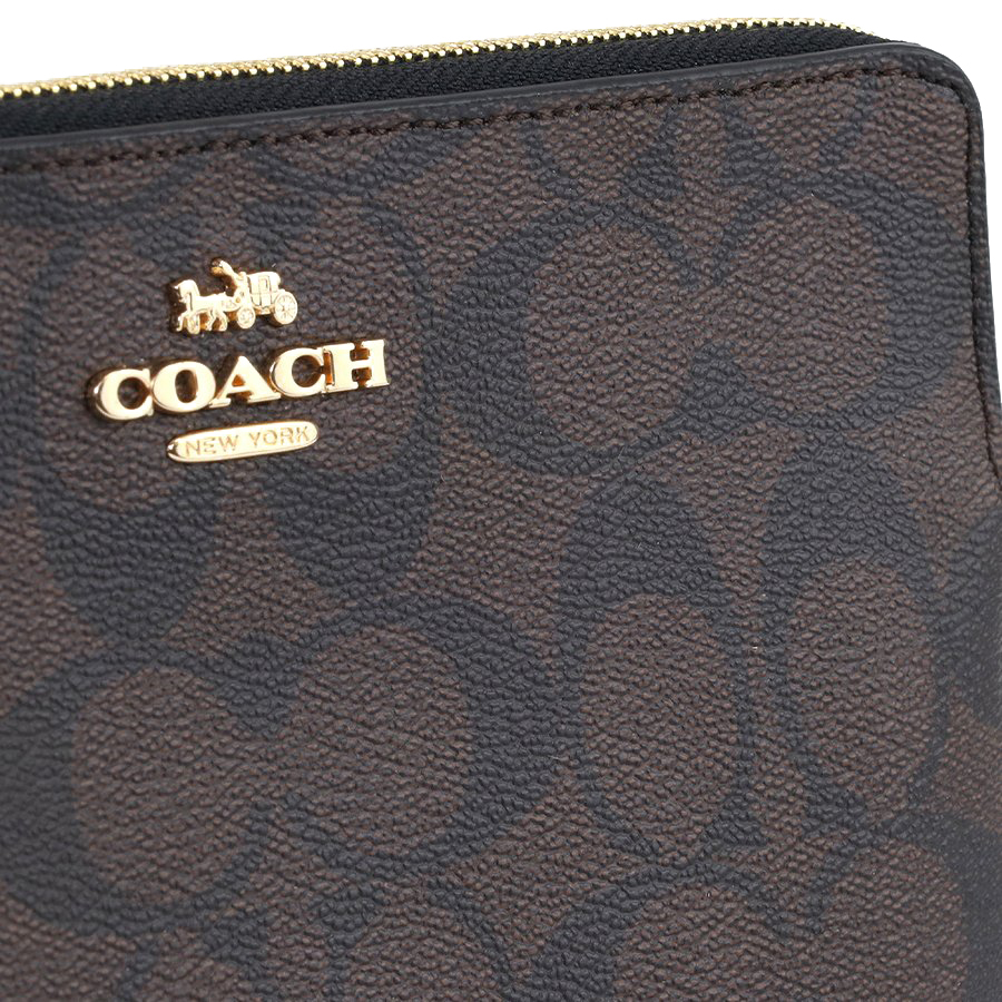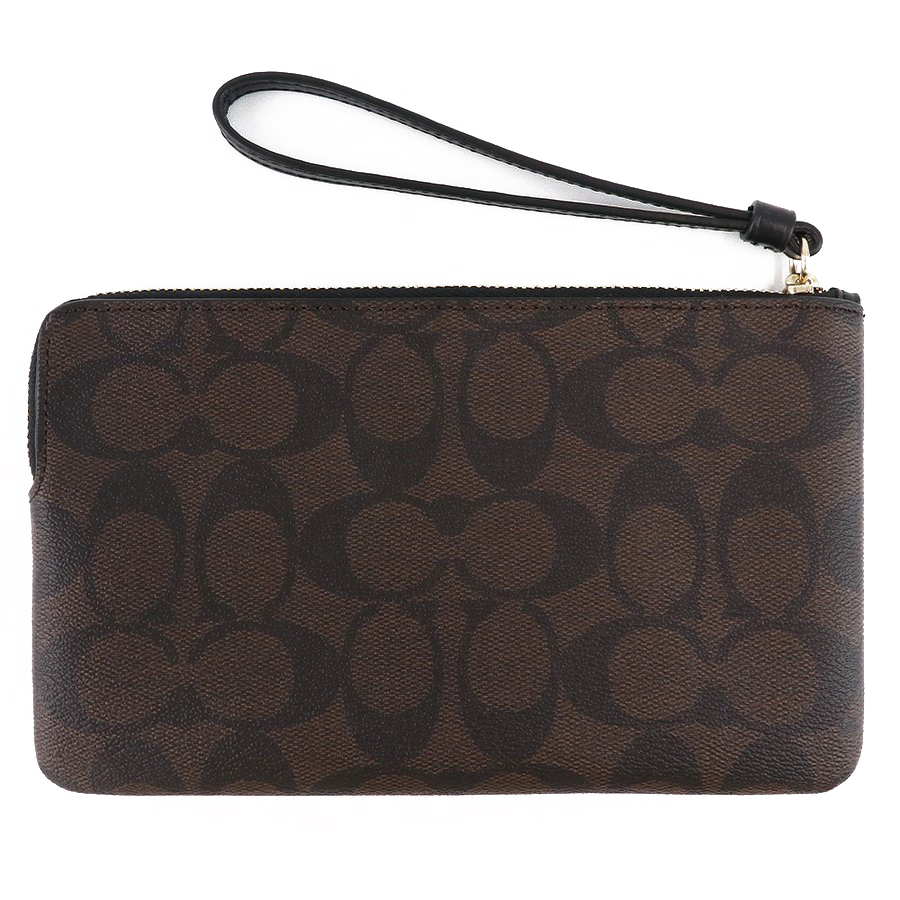 Coach Wristlet In Gift Box Large Wristlet Signature Large Corner Zip Brown Black # 6648