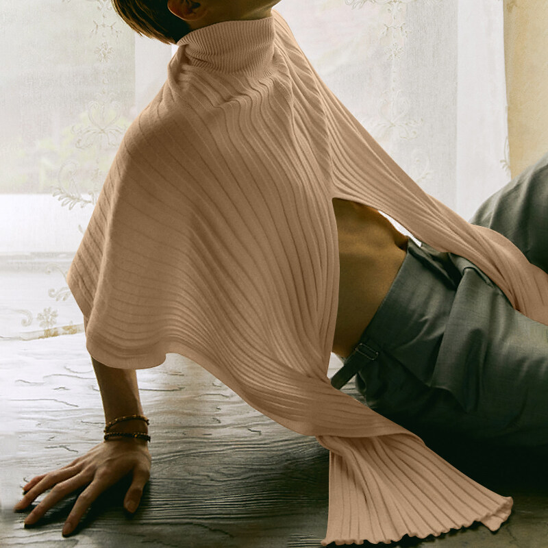 Beehoo INCERUN Mens Loose Poncho Cloak High Neck Knitwear Cape Shirts Short Sleeve Hippy Tops