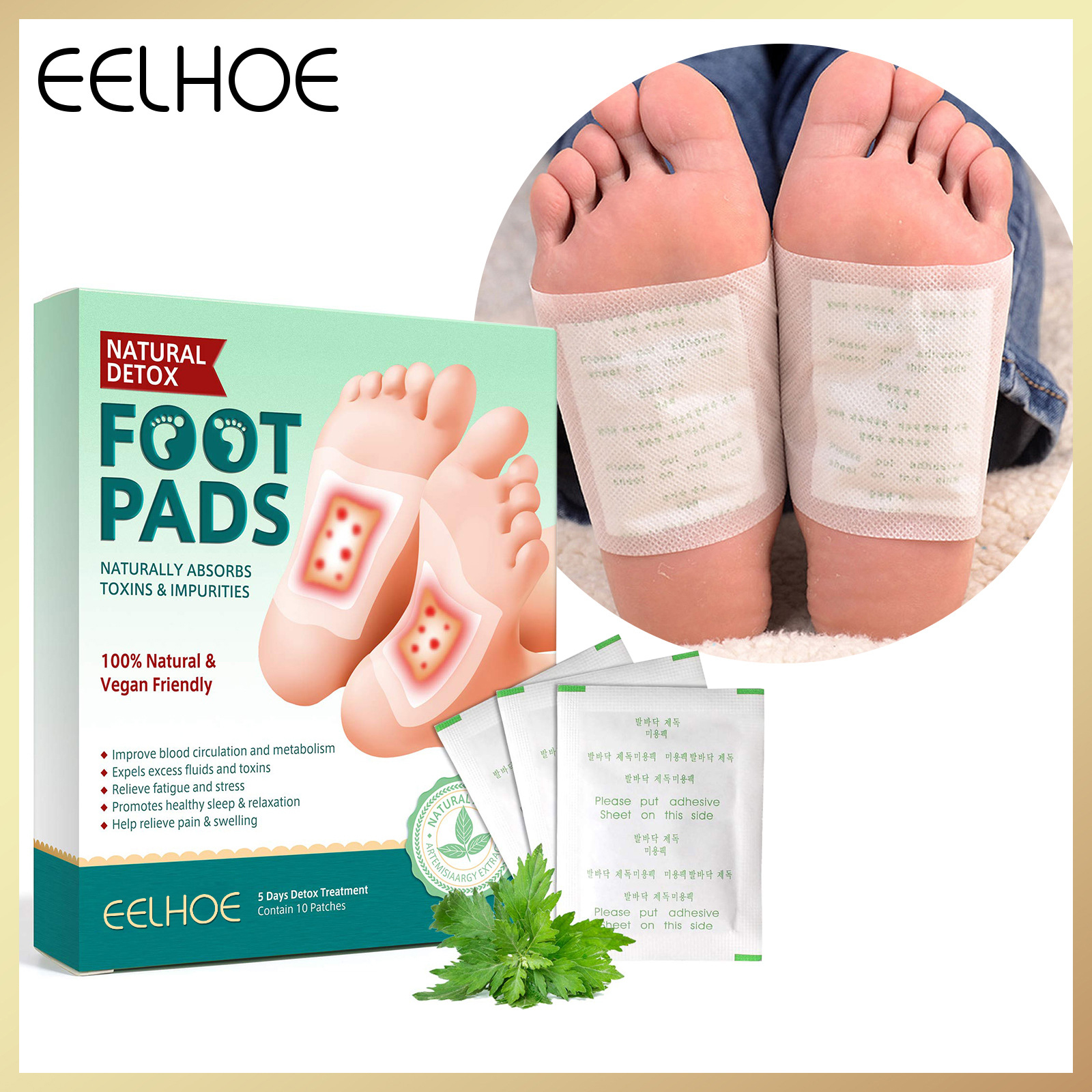 【Hot Sale】Eelhoe Foot Patch Detox Original Natural Ginger Foot Pads For Body Toxin For Sleep Well Slimming Stress Relief Reduce Leg Pain Relief Health Care Adhesive Sheets for Foot Improve Skin(10pcs)