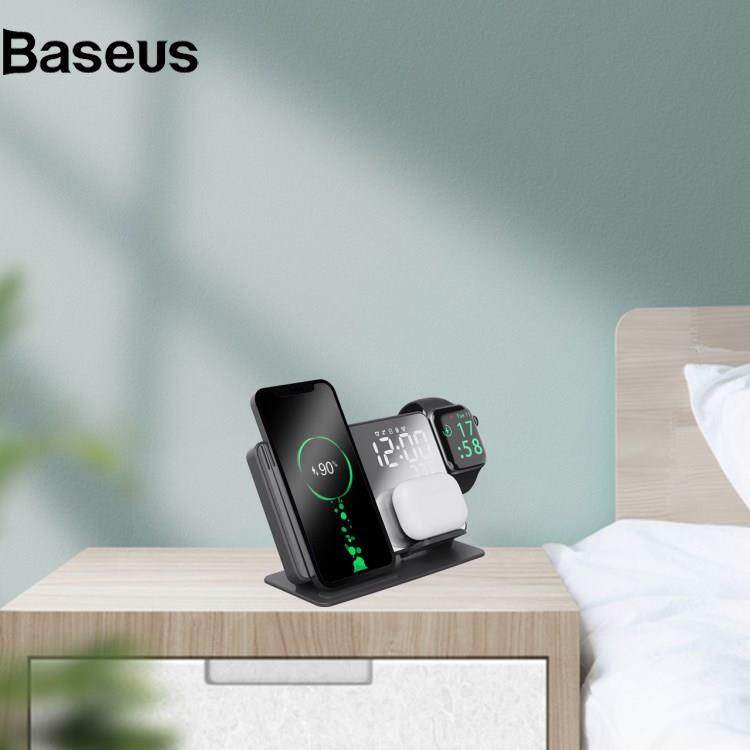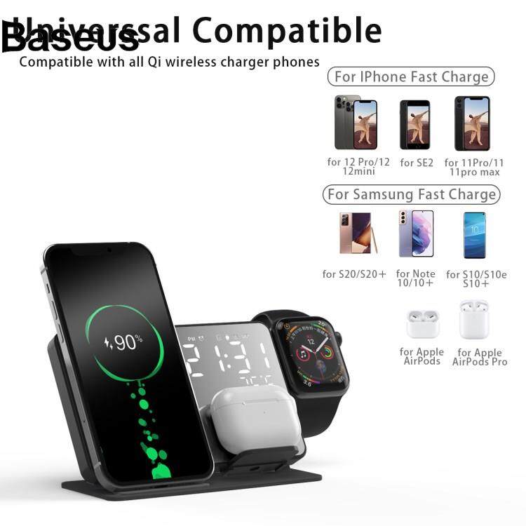 Wireless Charger 4-in-1 LED Digital Temperature Display Alarm Clock 15W Wireless Charger Qi Fast Charging Stand for iPhone Android iWatch AirPods