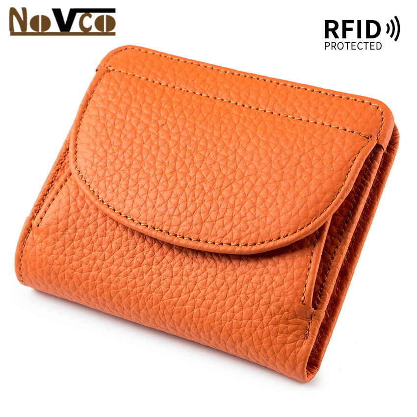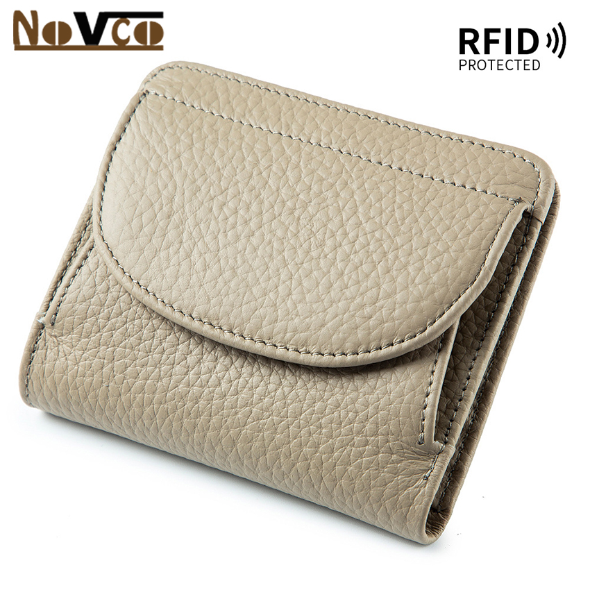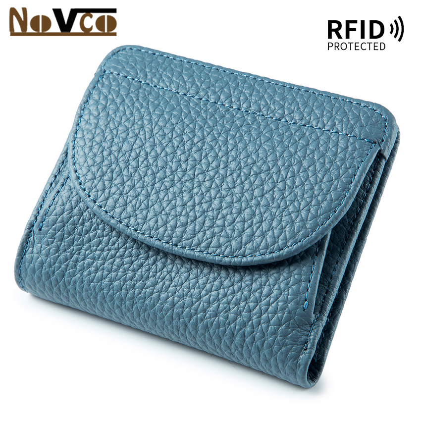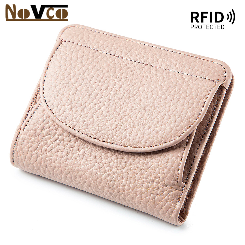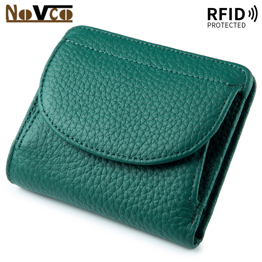 Novco Women's Genuine Leather Wallet, Multifunction Card Holder Wallet for Women, Anti Theft RFID Credit Card Holder, Small Leather Credit Card Wallets Short Compact Cute Small Coin Purse for Women