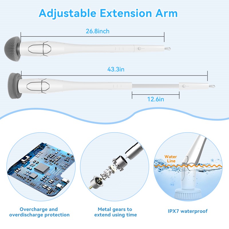 Round brush head: Used for cleaning bathtubs,fitting curved bathtubs and sinks, etc., no dirty corners.