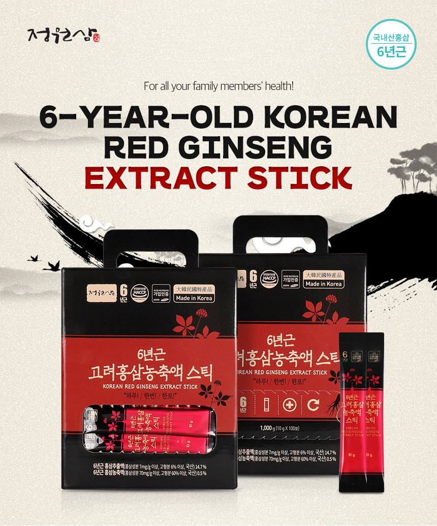 [BUY 1 FREE 1] JUNGWONSAM Korean 6 Years Red Ginseng Extract Stick Korean Food Extract Evertime Improving Immunity (10gX100sticks)X2