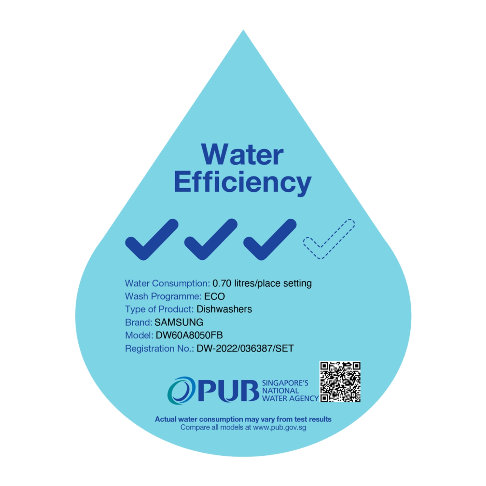 [Bulky] SAMSUNG DW60A8050FB/SP, Smart Freestanding Dishwasher, 14 Place Settings, 3 Ticks