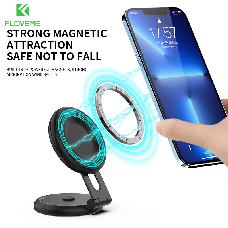 FLOVEME Magnetic Car Phone Holder for Tesla BYD New Hidden Dashboard Foldable Retractable Magsafe Wireless Charging Strong Magnetic Car Mounts 360 Rotatable Central Control Panel Car Phone Stand Holder for Electric Car New Energy Car GPS Navigate