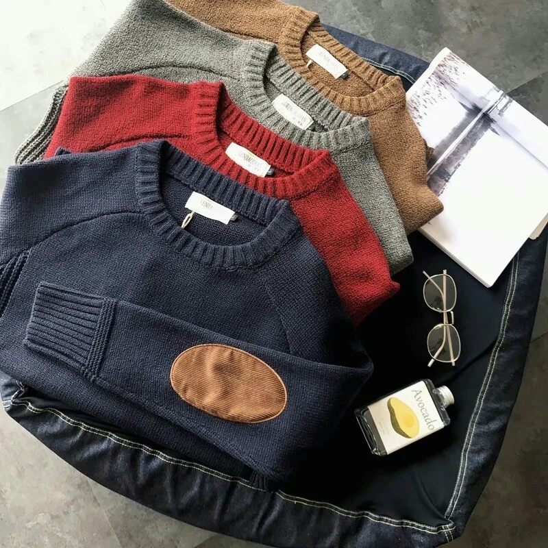 LUX ANGNER Autumn Winter Men's Pure Cotton Sweater Man Long Sleeve Solid Slim Fit Pullovers Sweaters For Men Casual Warm Jersey Knitted Pullover Korean Style Brand Clothes