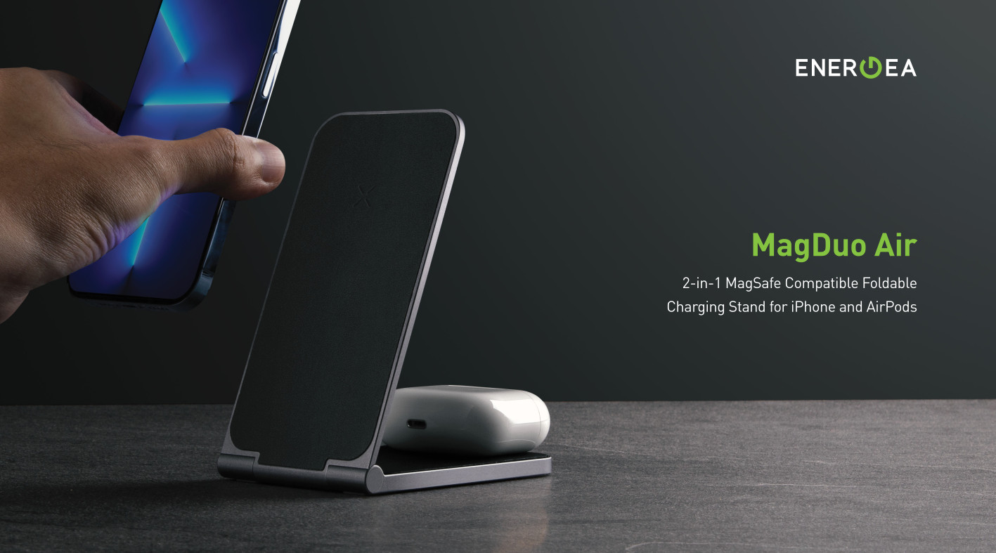 Energea MagDuo Air 2-in-1 Foldable MagSafe Wireless Charging Stand