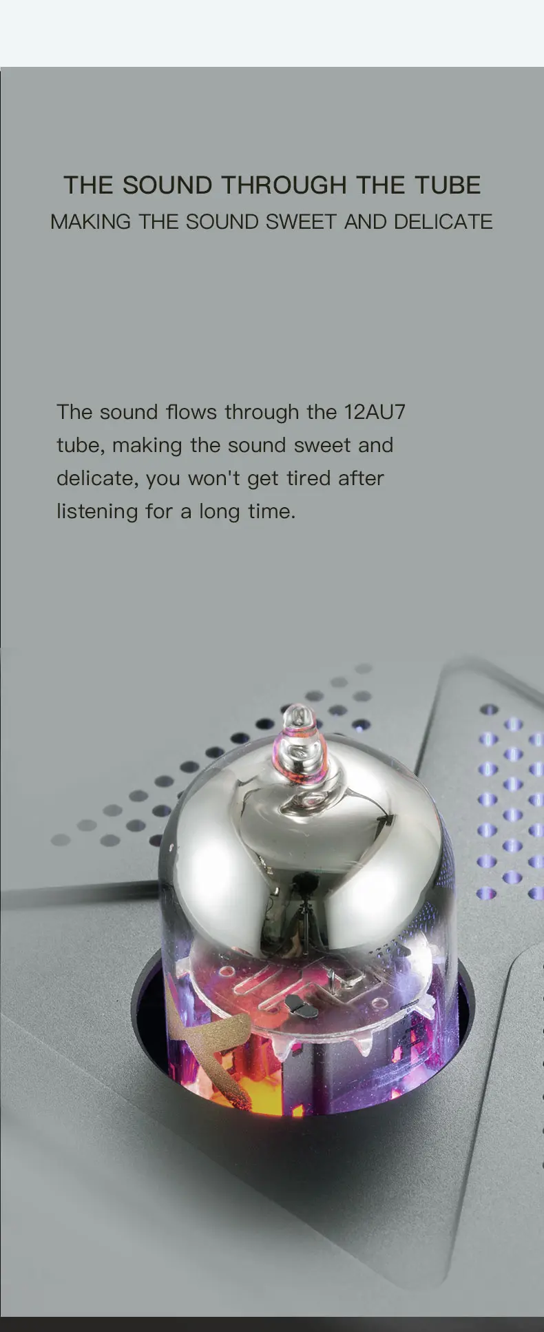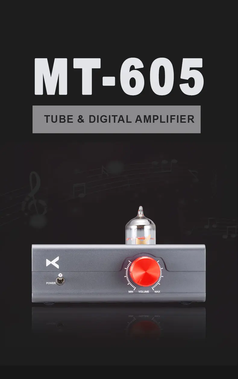 > Make your experience sweet and delicate with the goodness of a 12AU7 tube in the pre-amp stage on the MT-605. The sound flows thrown the tube getting a sweet tone and delicate texture that brings life to vocals and you won’t feel any fatigue even after listening for hours.