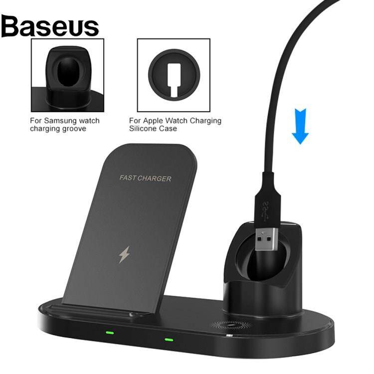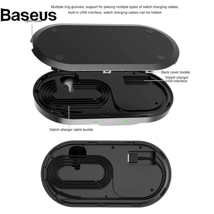 Baseus W55 3 in 1 15W Fast Charging Magnetic Wireless Charger Desktop Station Dock for Mobile Phone / Smart Watch / Headphones (Upgraded Version)