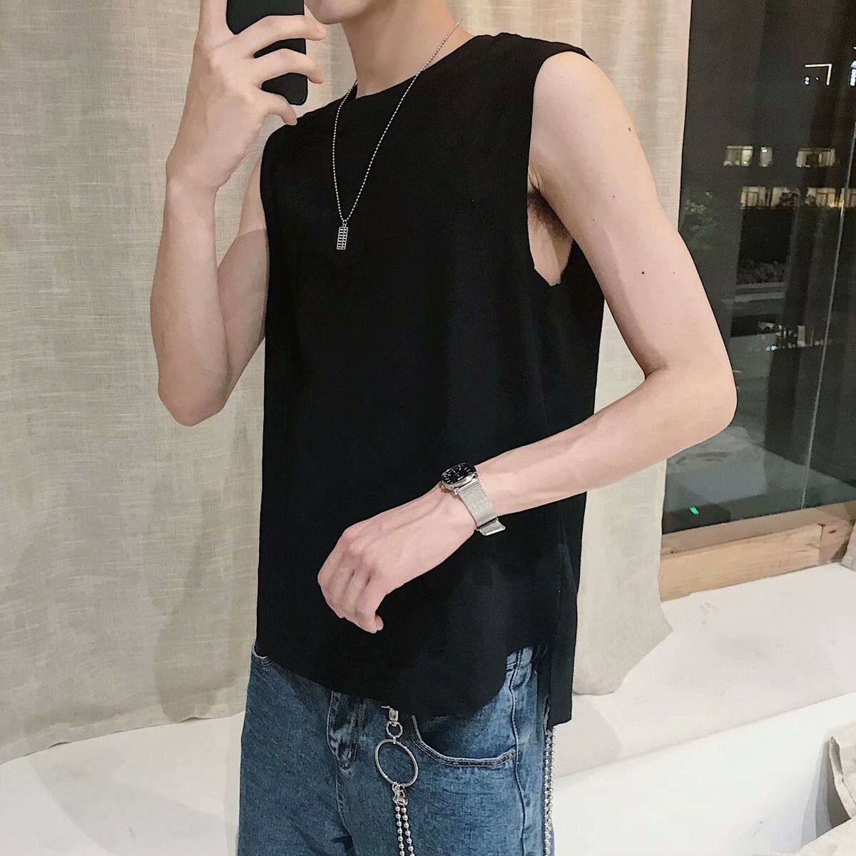S-3XL t shirt Men Korean Style Sleeveless Fashion Tops Casual Plain Vest