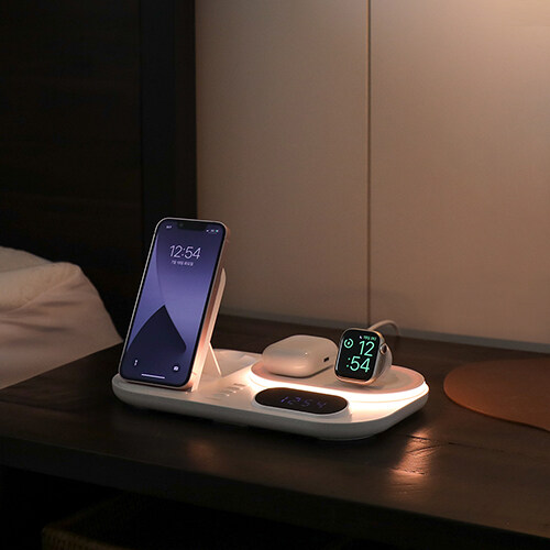 mooas All-Rounder 4 in 1 Fast Wireless Charging nightlight Clock, Wireless Charging Station with LED Clock, Compatible with iPhone 12, Galaxy S22, LG V50 and Newer, Airpods, Galaxy Buds, Apple Watch