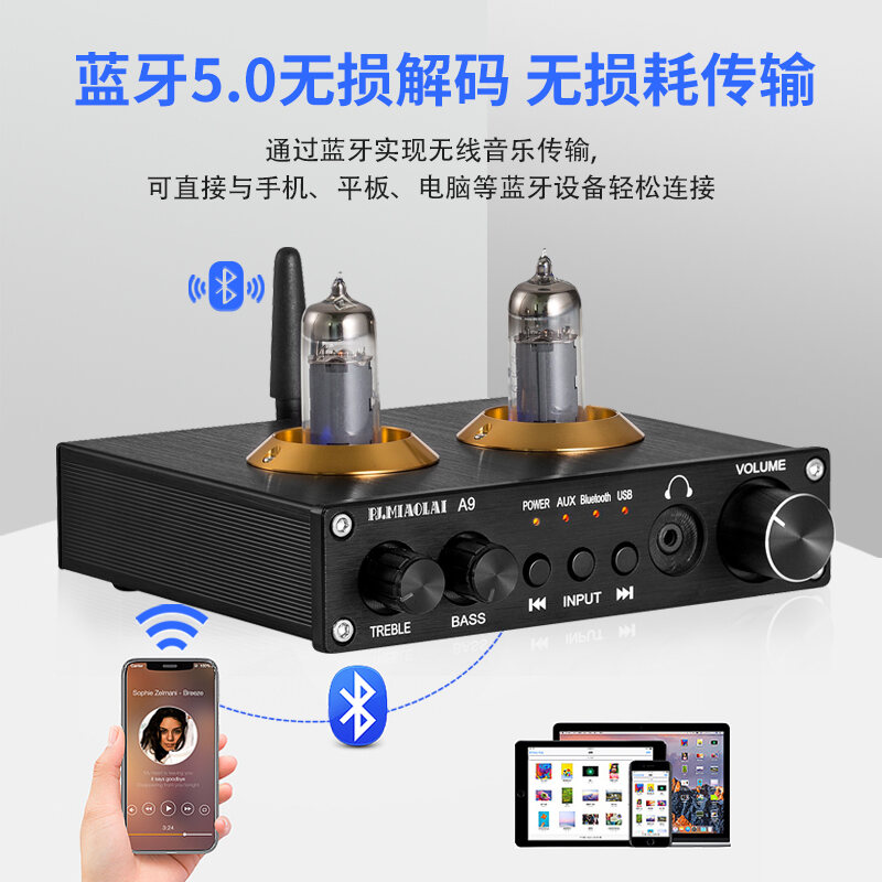 PJ. Miaolai A9 Fever Electronic Tube Gallbladder HiFi Bluetooth 5.0 Amplifier Front Tone U Disk Playback