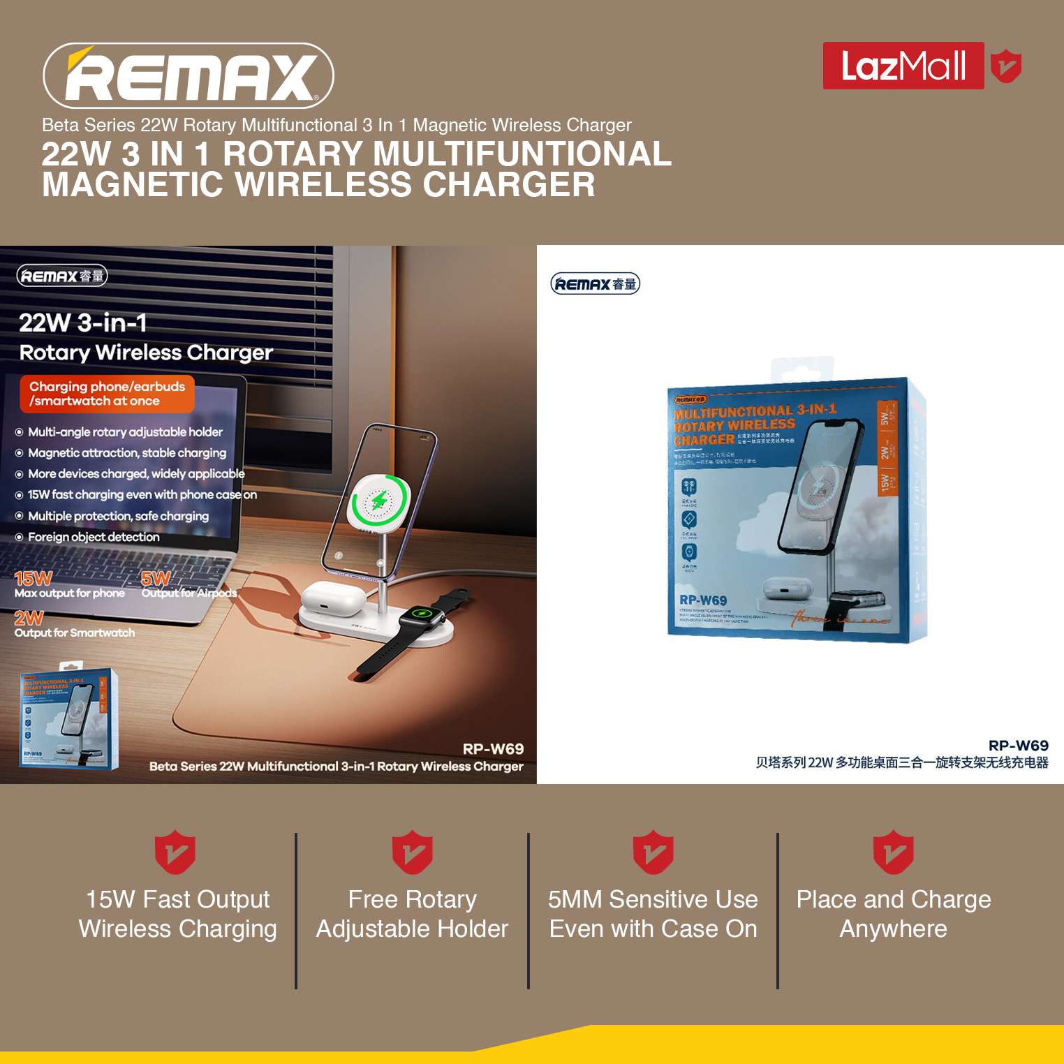 [Remax Energy] RP-W69 3 In 1 22W Multifunctional Rotary Wireless Charger
