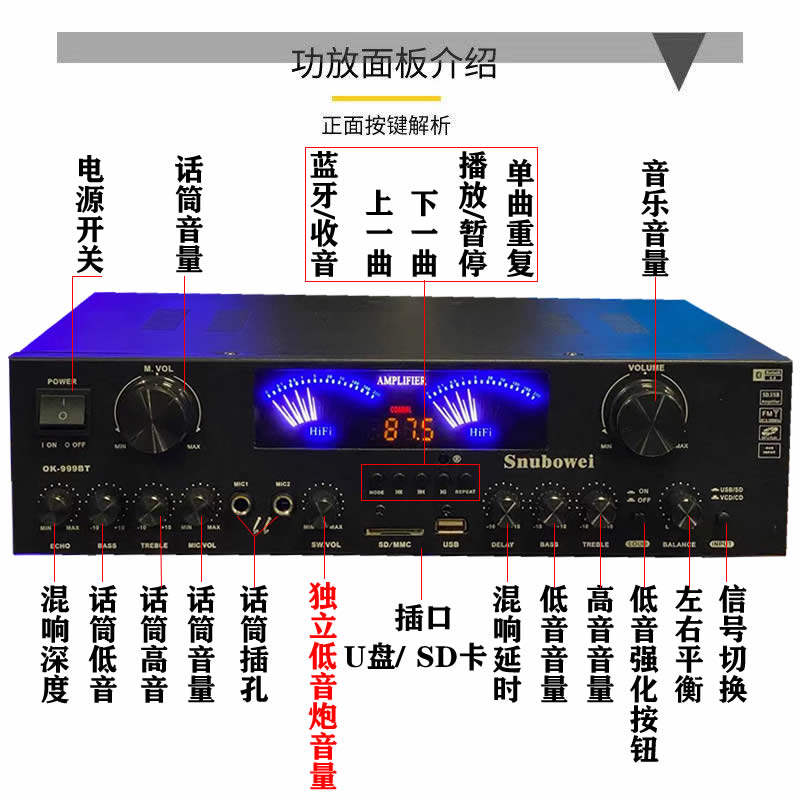 5.1 Power Amplifier High Power Professional Bluetooth Power Amplifier Extra Bass KTV Stage Audio Amplifier HiFi Sound Quality