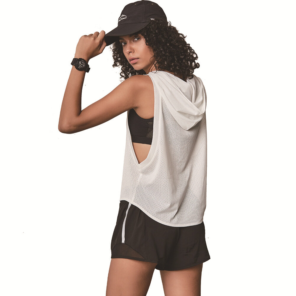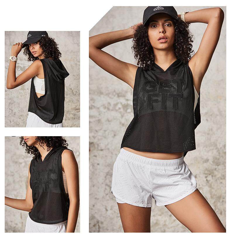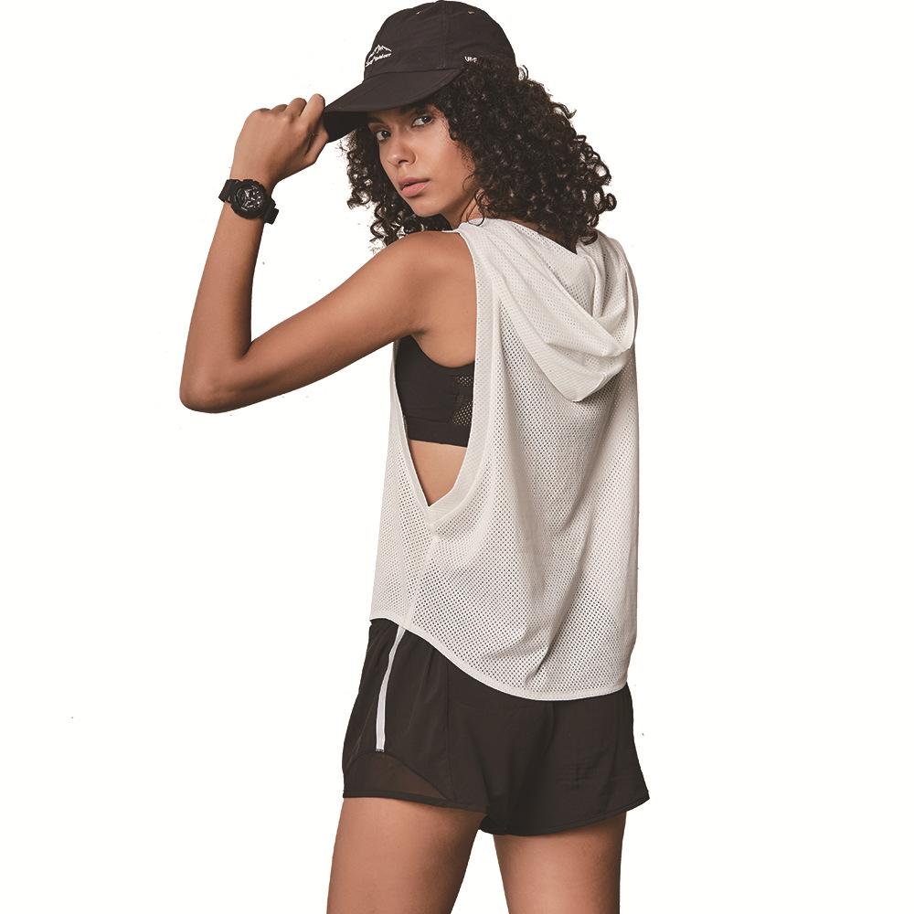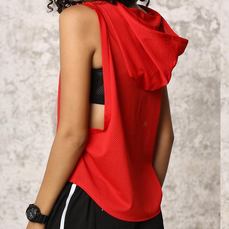 Summer Sports Women Yoga Tank Tops Loose Hoodies Running Fitness Crop Top Mesh Hooded Sleeveless Vest Dry Fit