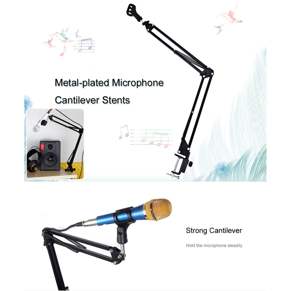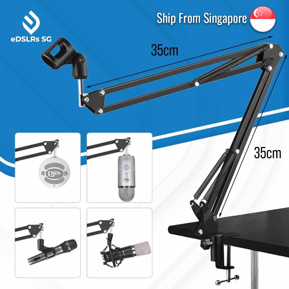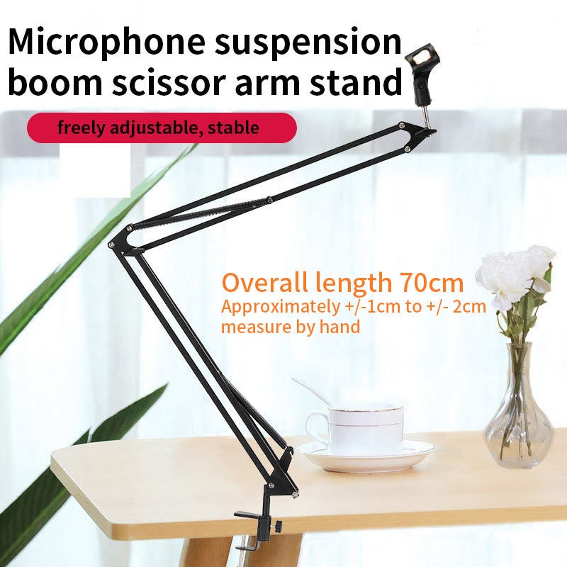 eDSLRS Adjustable Microphone Stand Suspension Boom Scissor Arm Mic Bracket Metal with Microphone Holder for Studio Recording Live Video Broadcasting Online Singing