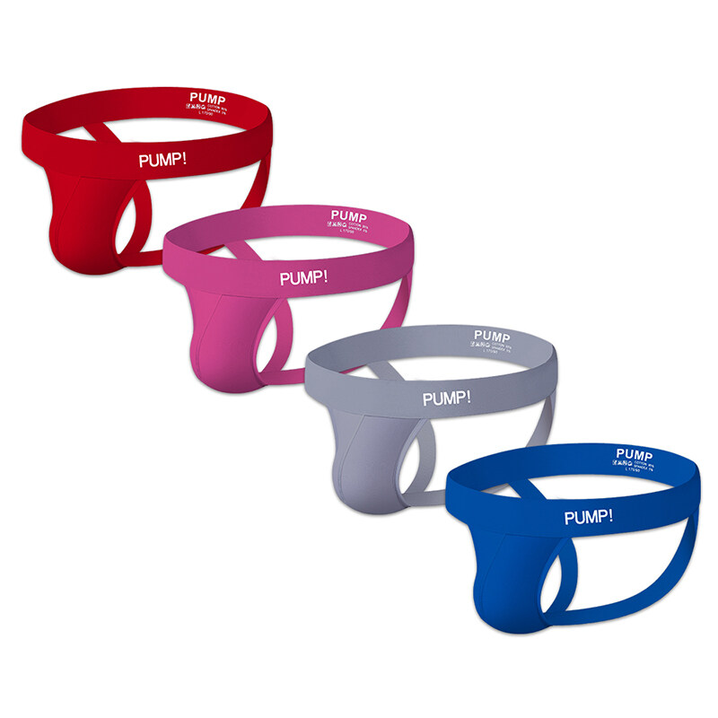 PUMP 4Pcs Patchwork Cotton Sexy Men Underwear Thong Mens Jockstrap Popular Thongs Jockstrap Men And G strings Lingeries CMENIN Soft Splice Innerwear H96