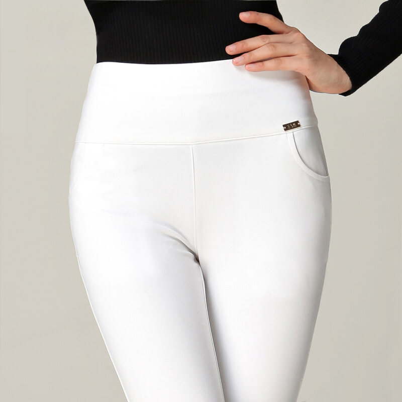 Spring White Leggings Women's Outer Wear High Waist Tight Middle-Aged Mom Pants plus Size Stretch Skinny Pants