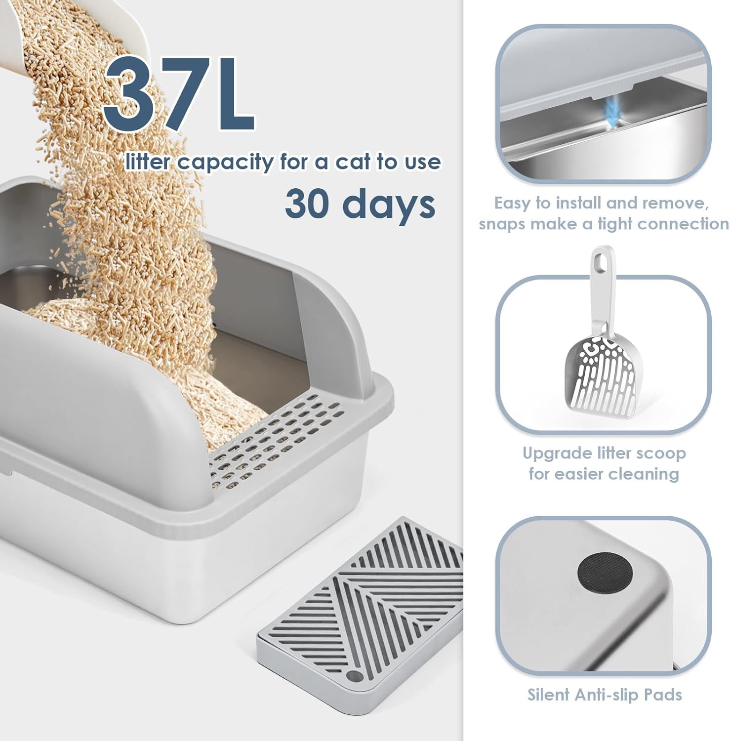 | Included Components | Stainless steel litter box with lid, Scoop and Holder, foot board |